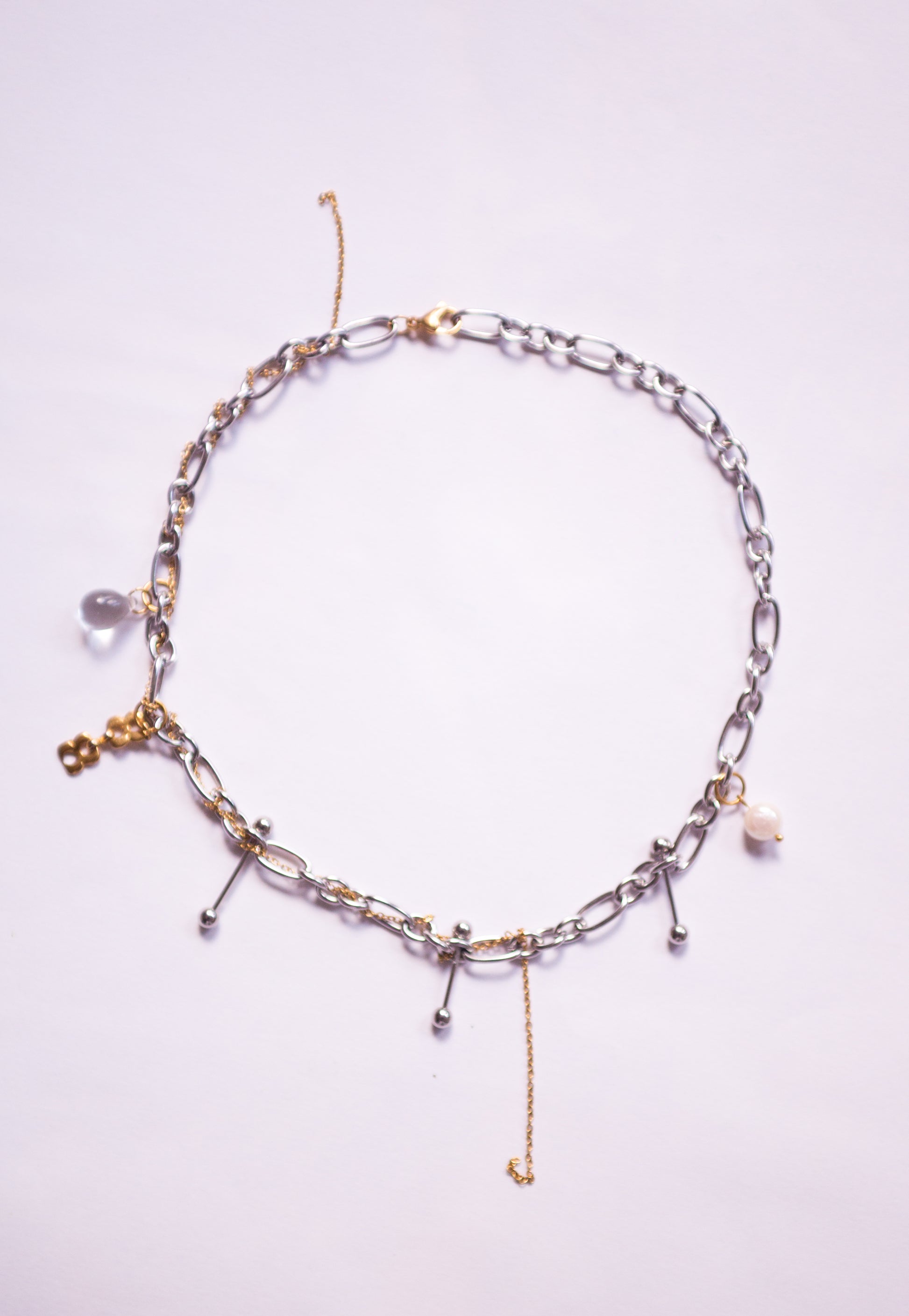 Chocker réglable en acier inoxydable, double chaine argenté et doré, piercing, nacre, et charms vintage