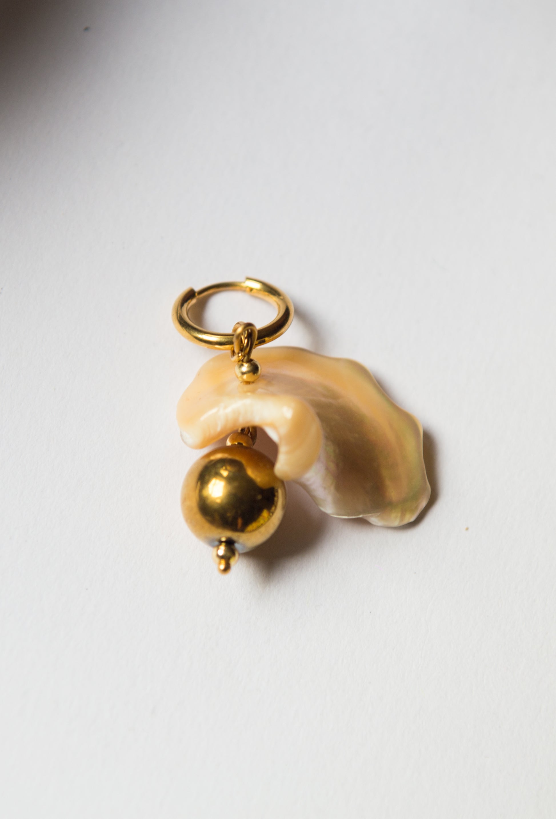 Mono boucle en acier inoxydable doré, avec perle en acier doré, et nacre
